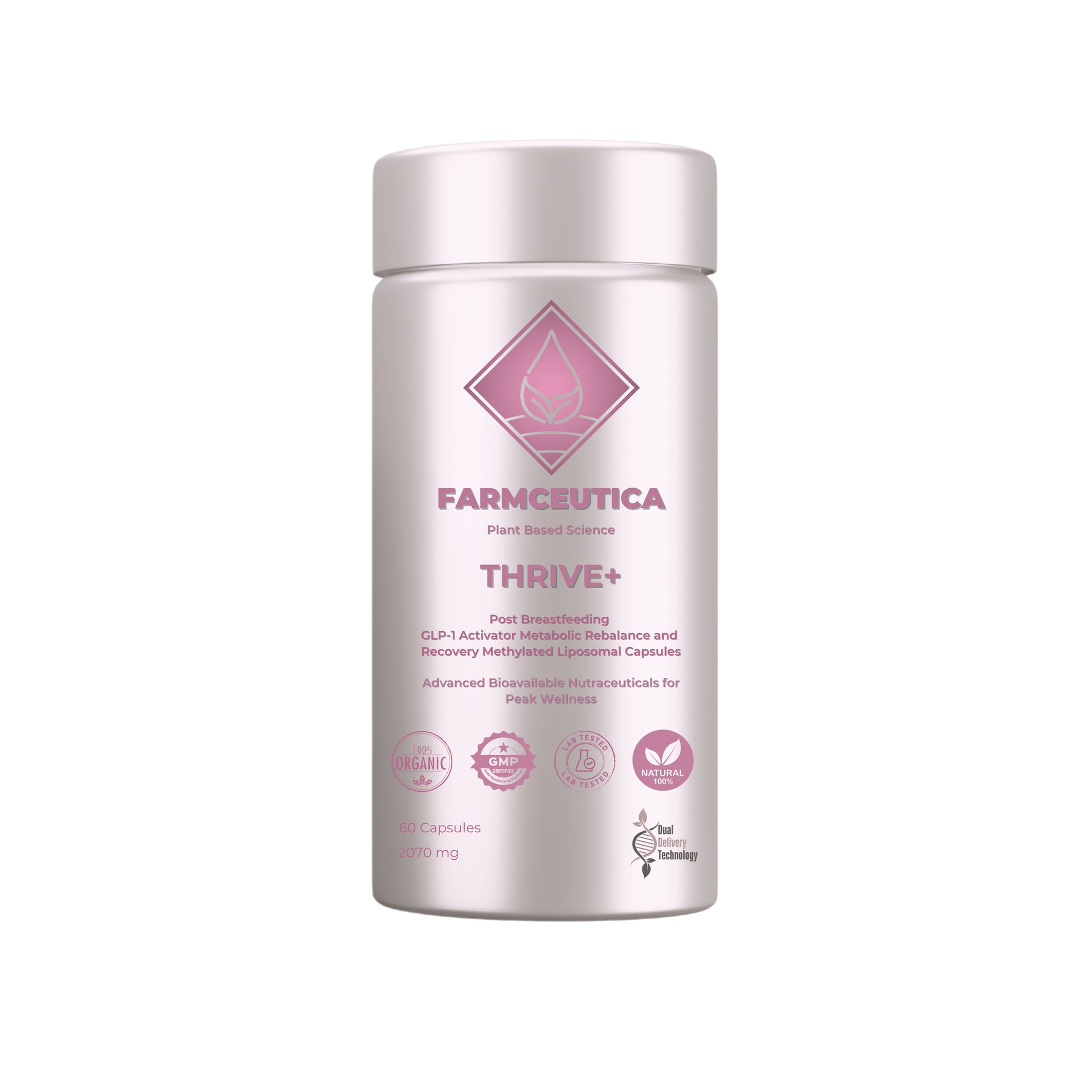Thrive+ GLP-1 Activator™ has evolved into a comprehensive postnatal recovery solution, now fortified with Moringa Leaf Powder and BHB Ketone Salts (Magnesium, Calcium, and Sodium BHB) for enhanced metabolic support, brain fuel, and hormonal rebalancing. Powered by FarmCeutica’s Methylated Micellar + Liposomal Dual Delivery Technology, for 10X Superior Absorption, this precision formulation offers unparalleled nutrient absorption to fuel your transition from lactation to long-term vitality, clarity, and strength.